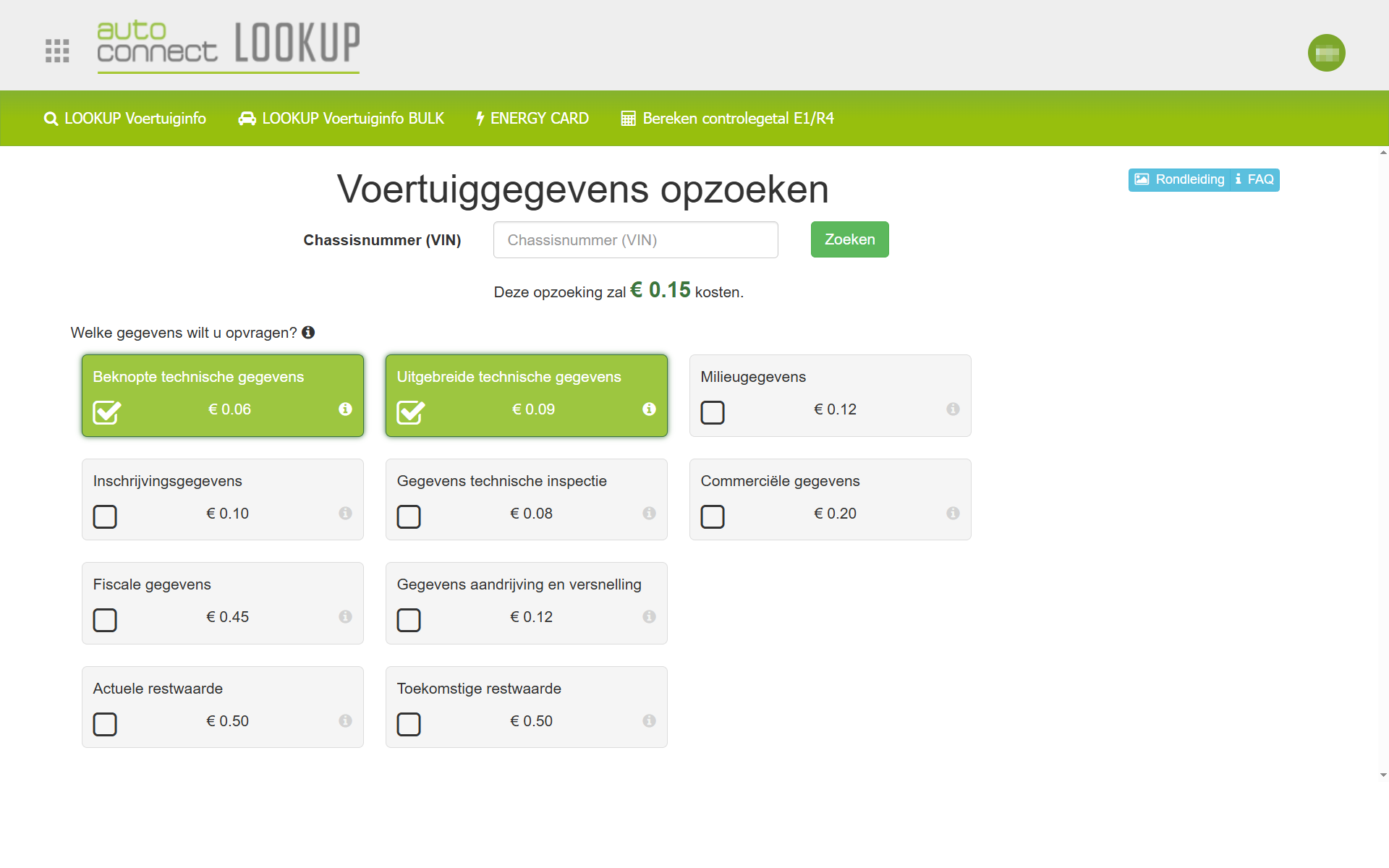 Autoconnect LOOKUP – 360° voertuigprofiel – op basis van chasissnummer – op basis van VIN – elk Belgisch voertuig – 120 datavelden – technisch – commercieel – fiscaal – milieu – technische controledata – inschrijvingsdetails – huidige en toekomstige restwaarde – API – webapplicatie – csv-bestand – datablokken